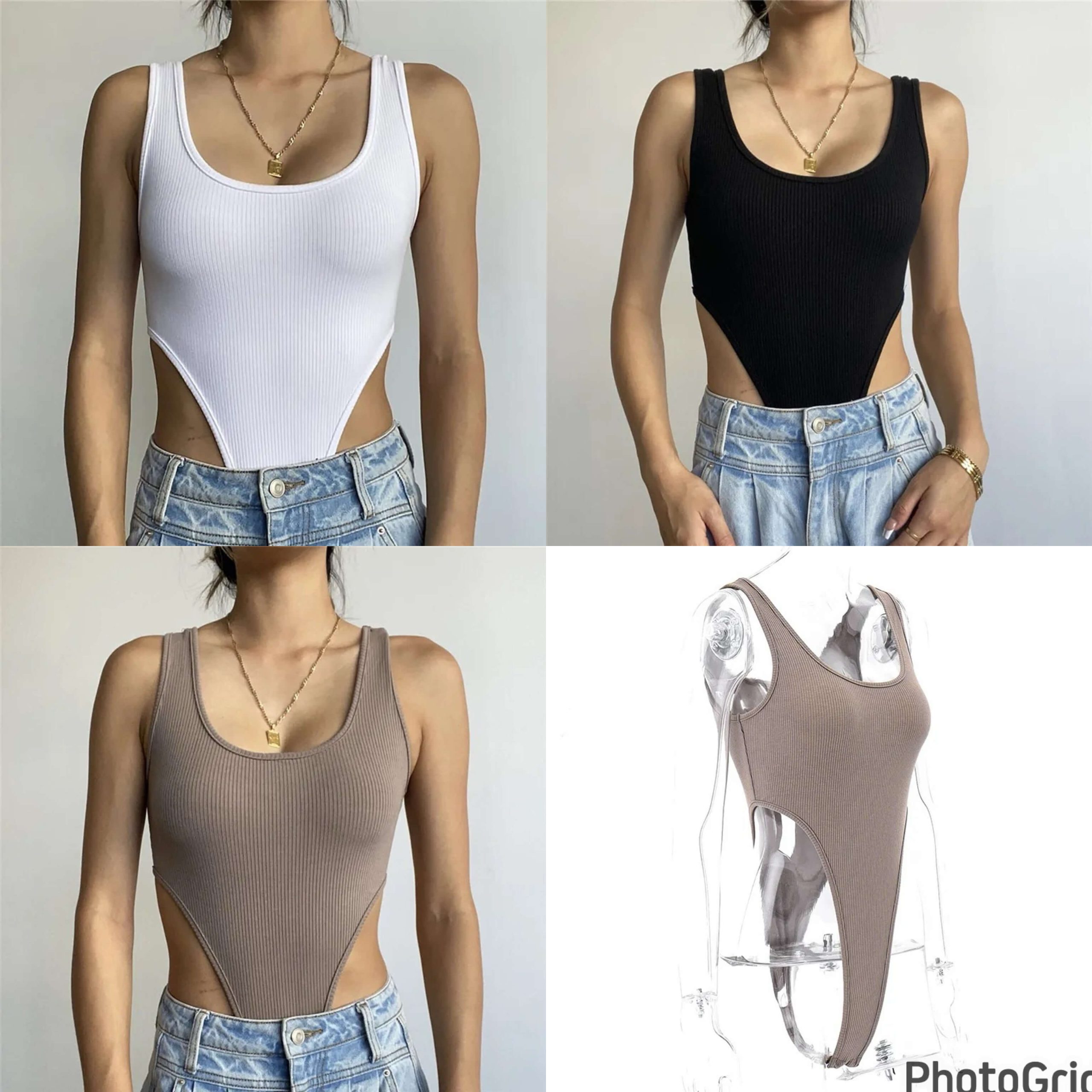 Sexy ,ribbed,sleeveless,high cut, vest bodysuit.