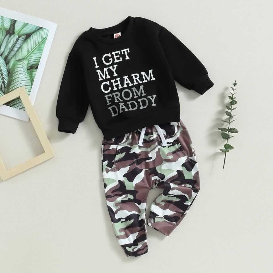 Baby boys clothes infant cuet letter long sleeve top camo pants spring outfits.