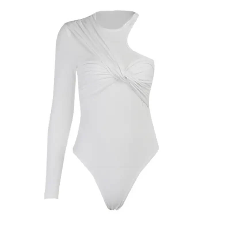 Our bodysuit is defined by it’s slim fitting silhouette and is cut from a beautifully soft stretch high tension fabric. It has a rounded neckline with one long sleeve and sits smoothly under just about anything. Wear yours with our trendy trousers for days when only comfy dressing will do with a touch of chic.