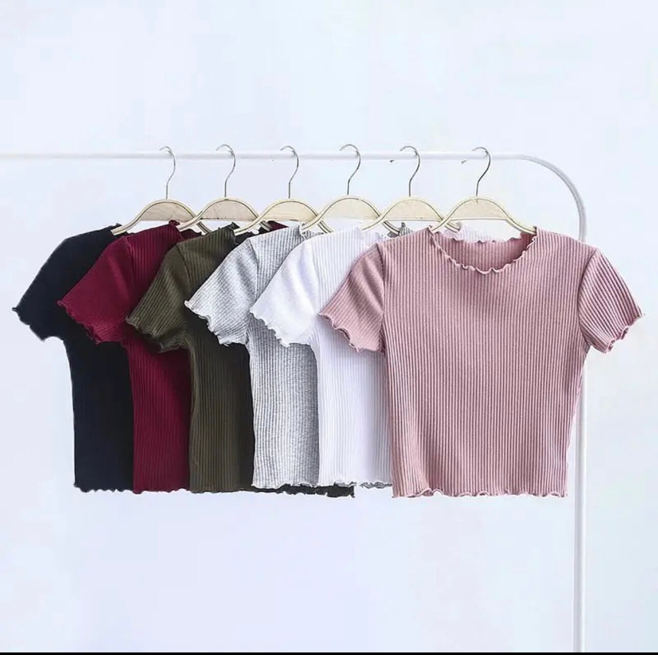 Cute crop top short sleeved ruffle neck