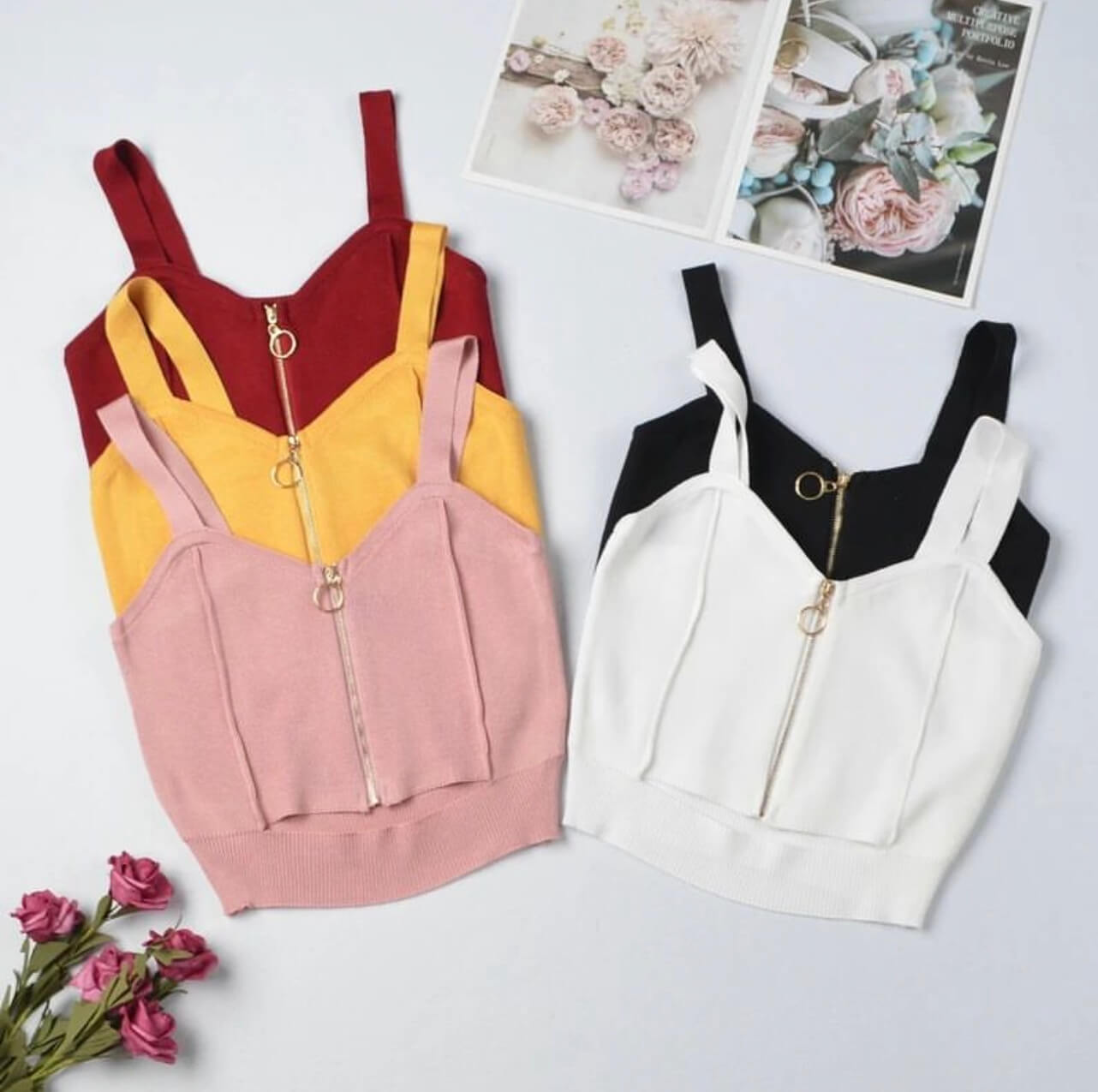 Sexy zipper knitted camisole with hole, sleeveless women crop top.