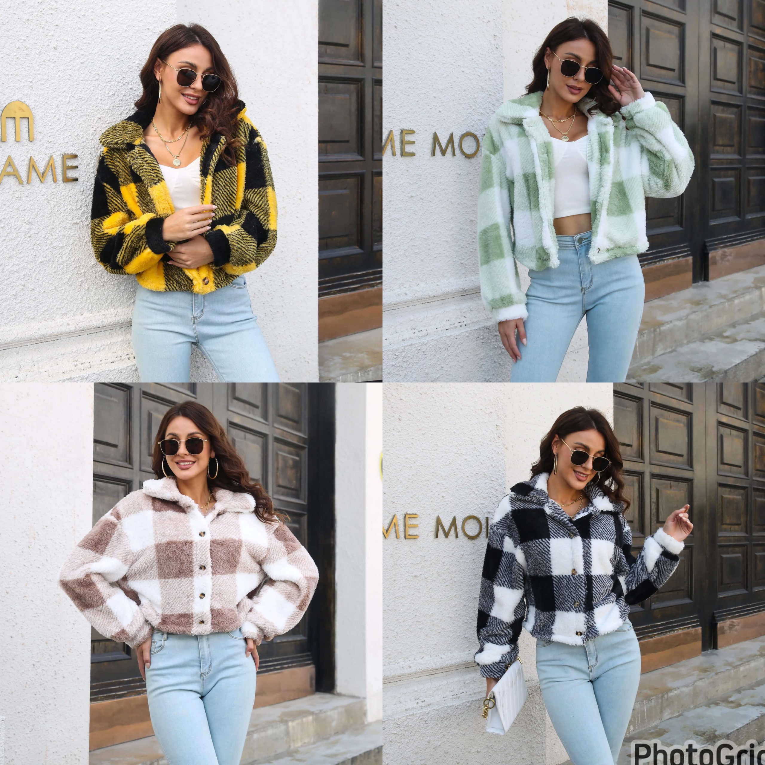 Light woolen long sleeved plaid open front cardigan